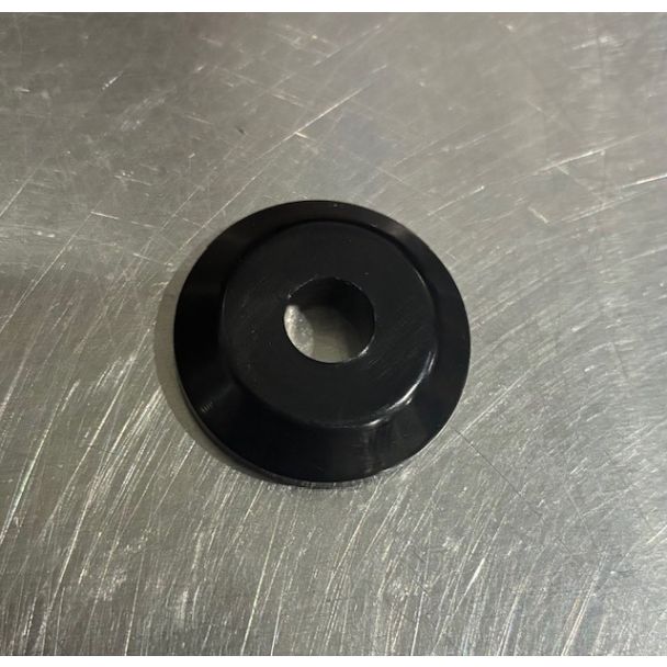 1" outside diameter with 1/4" hole. Made from aluminum and anodized black.